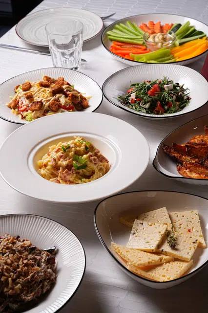 In the morning, you can enjoy a buffet or continental breakfast. Breakfast includes bread, cheeses, pastries, oatmeal and fresh fruit.